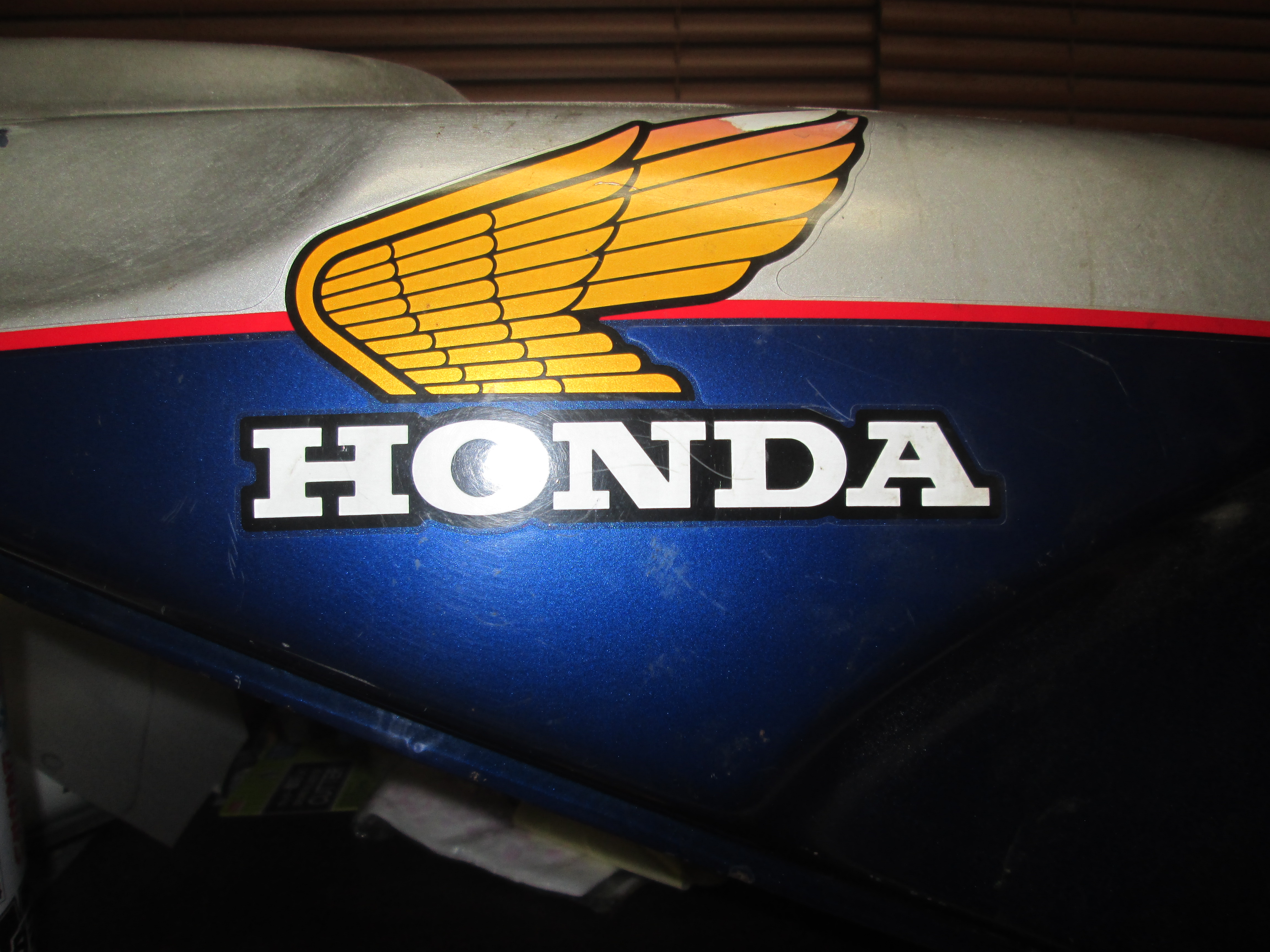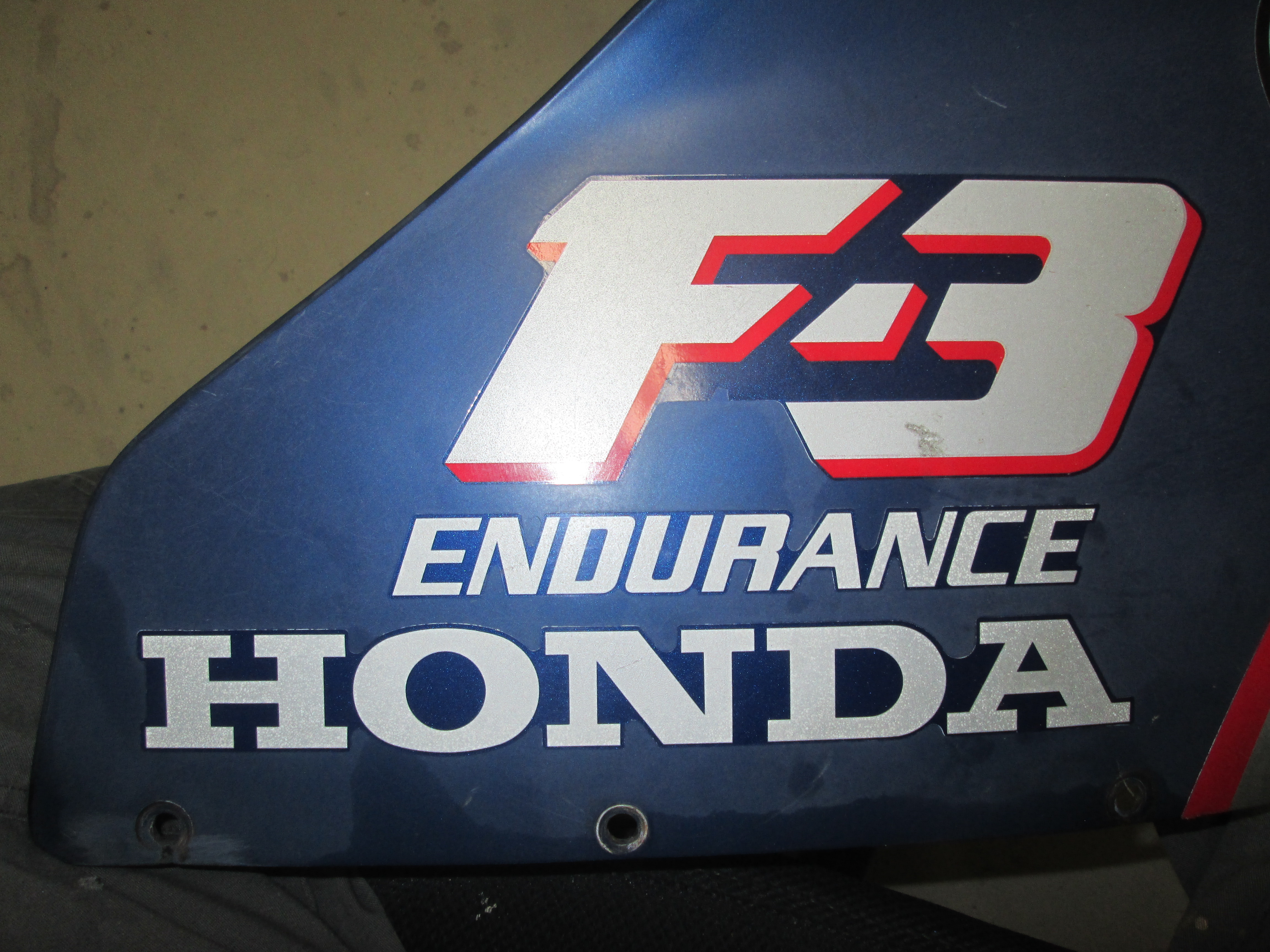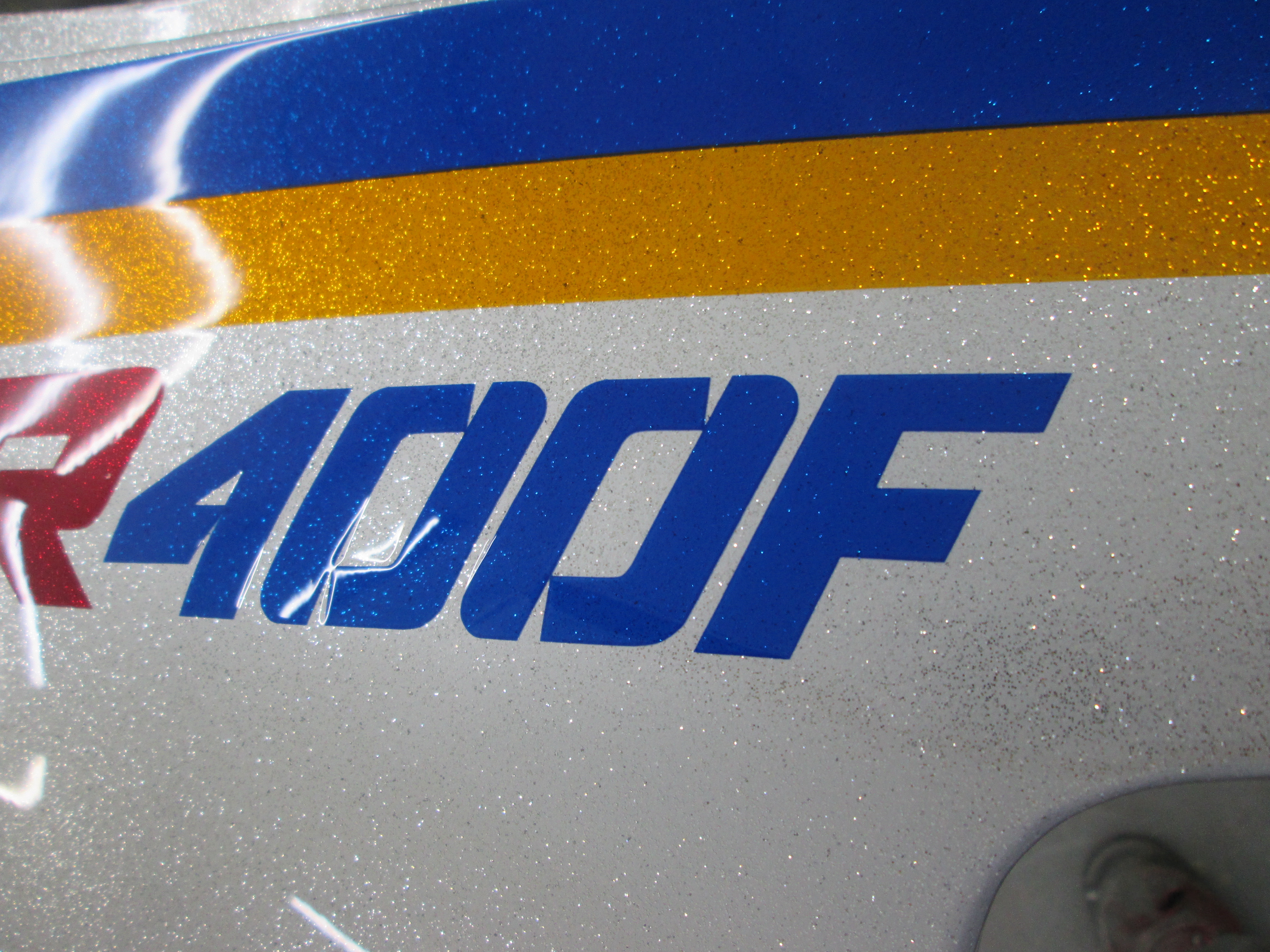 ホンダCBR400F 外装パーツ 一式の塗装です。 オーナー様のオーダーは、ベースのシルバーに中目位のラメを・・・青色の所は、キャンディブルーに・・・ 赤いラインは、キャンディゴールドにして下さい・・・です。 シルバーベースに0.4mmのシルバーフレークをウエットで塗装しました。 テールのロゴも入れました。 サイドもペイントで・・・ ウイングマークは、純正シールを用意して頂きました。 塗装、終了です。後日、フロントフェンダーを忘れてた~・・・急いで塗装しました。 完成状態が拝見したいですね。