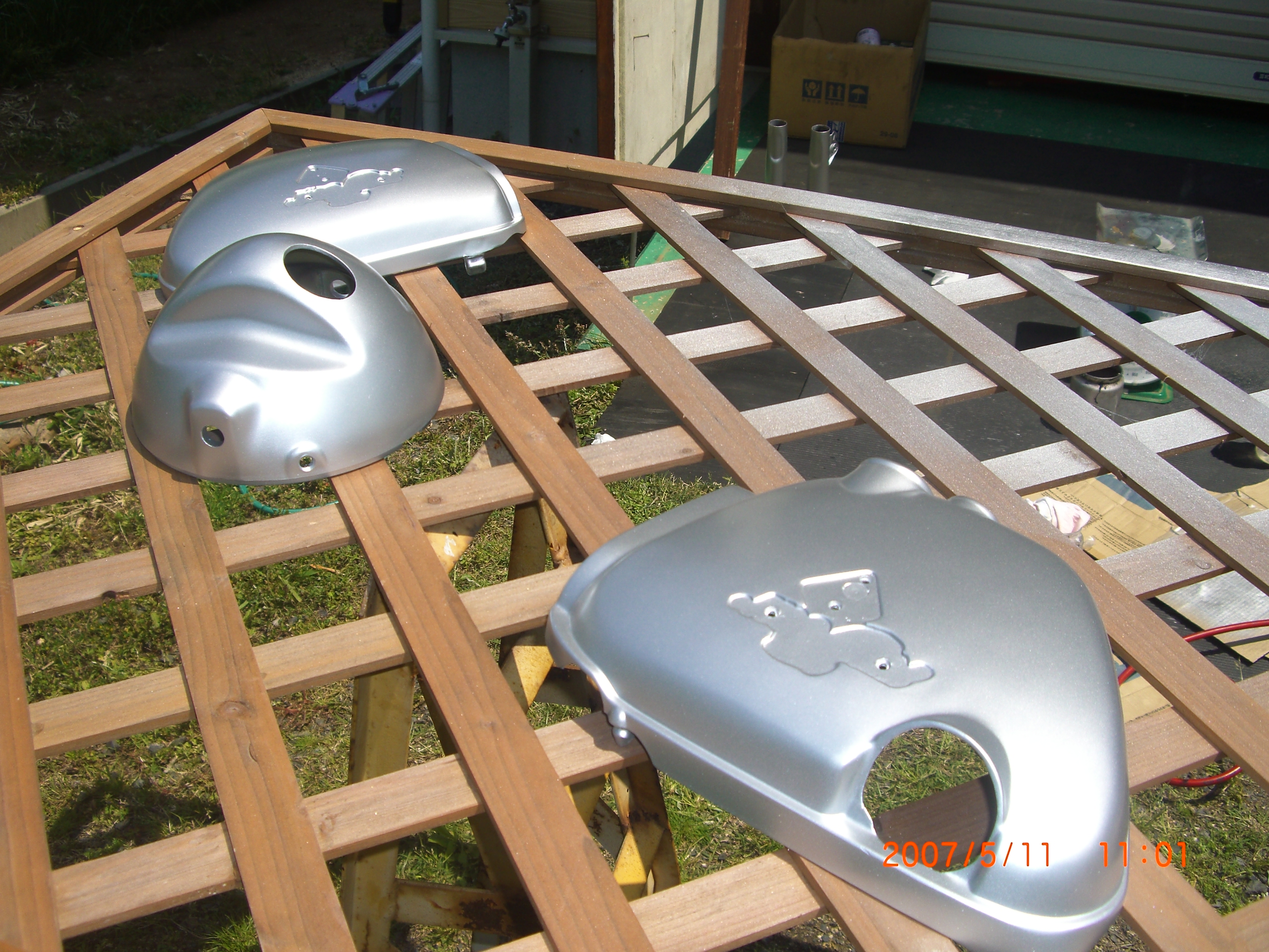 外装部品の塗装です。下地処理をしてサフェイサーです。