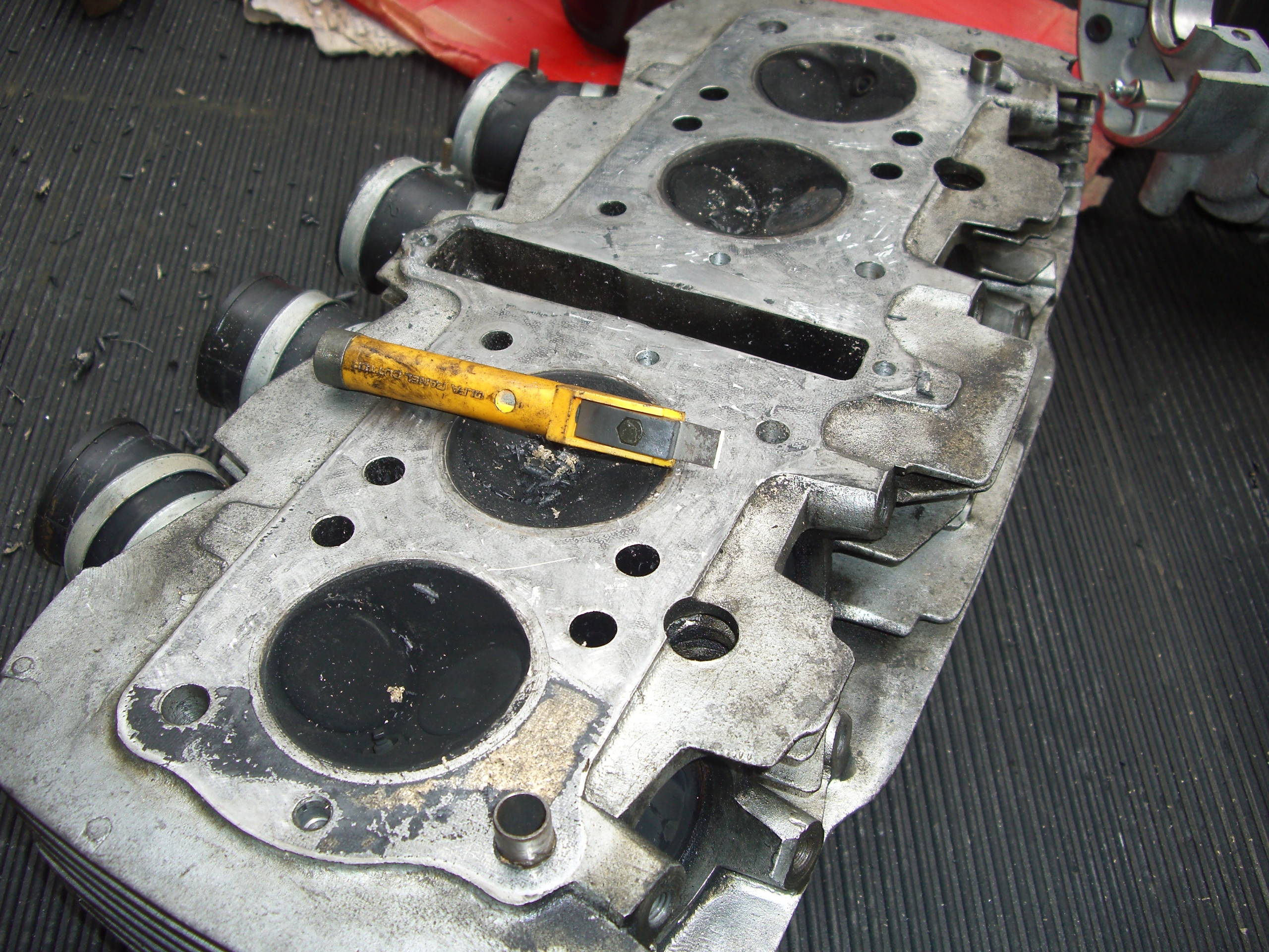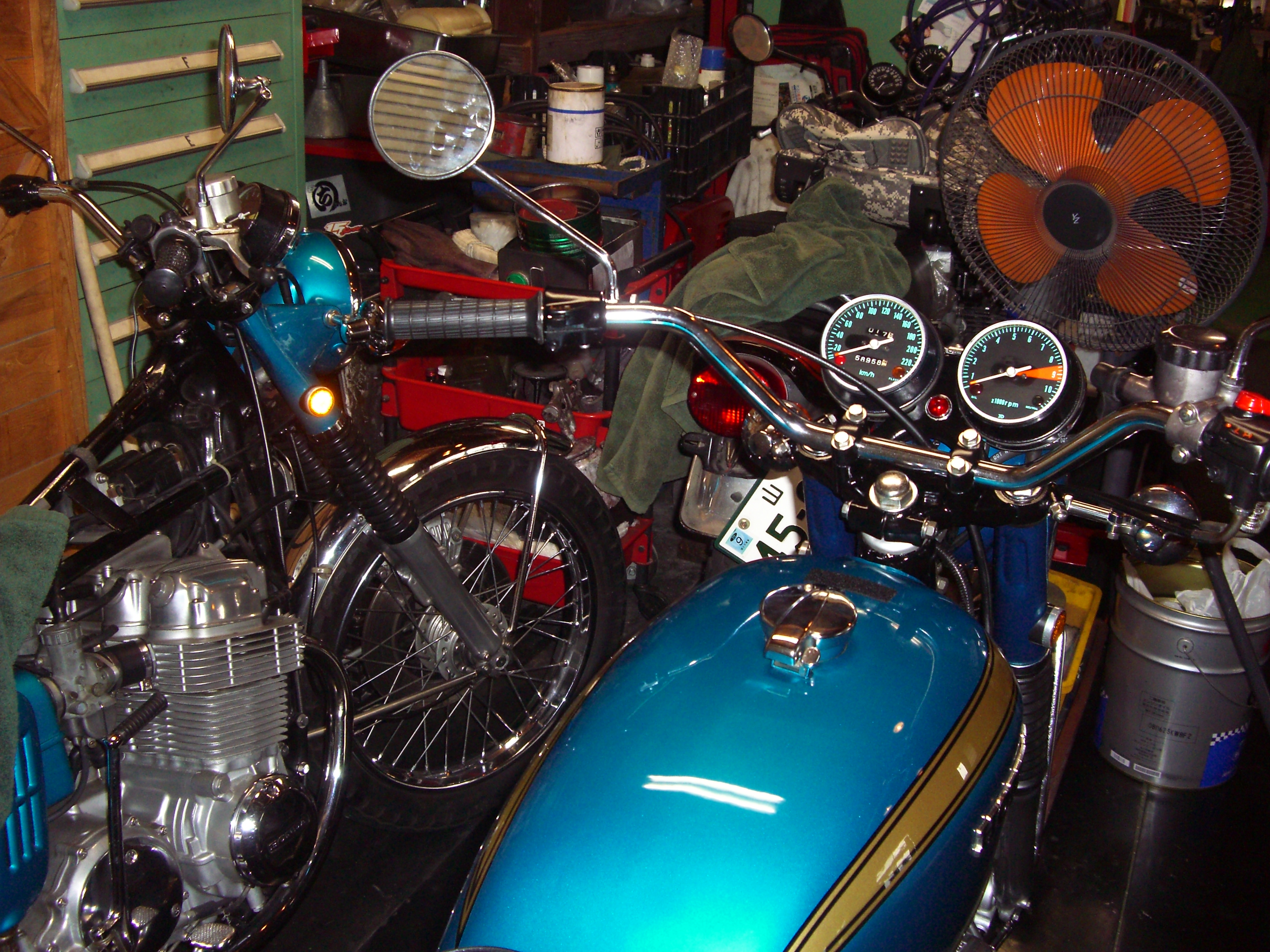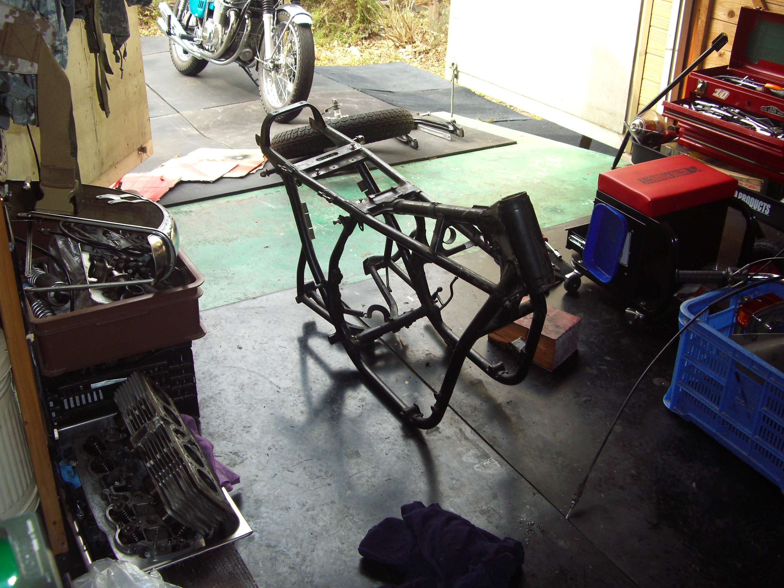 いつもお世話になっている、Nobuさんのレストア日記の一部です。 ホンダCB750 エンジン分解、 OILが・・・ 汚れてます・・・ コンディションは、良いほうですかね? 分解して行きます。 まる裸、 ヘッドの掃除、 ポリッシュして組上げて・・・ フレームに乗せて、 組立て終了、完成。・・・?同じ色のCBが、2台・・・どちらもピカピカです。