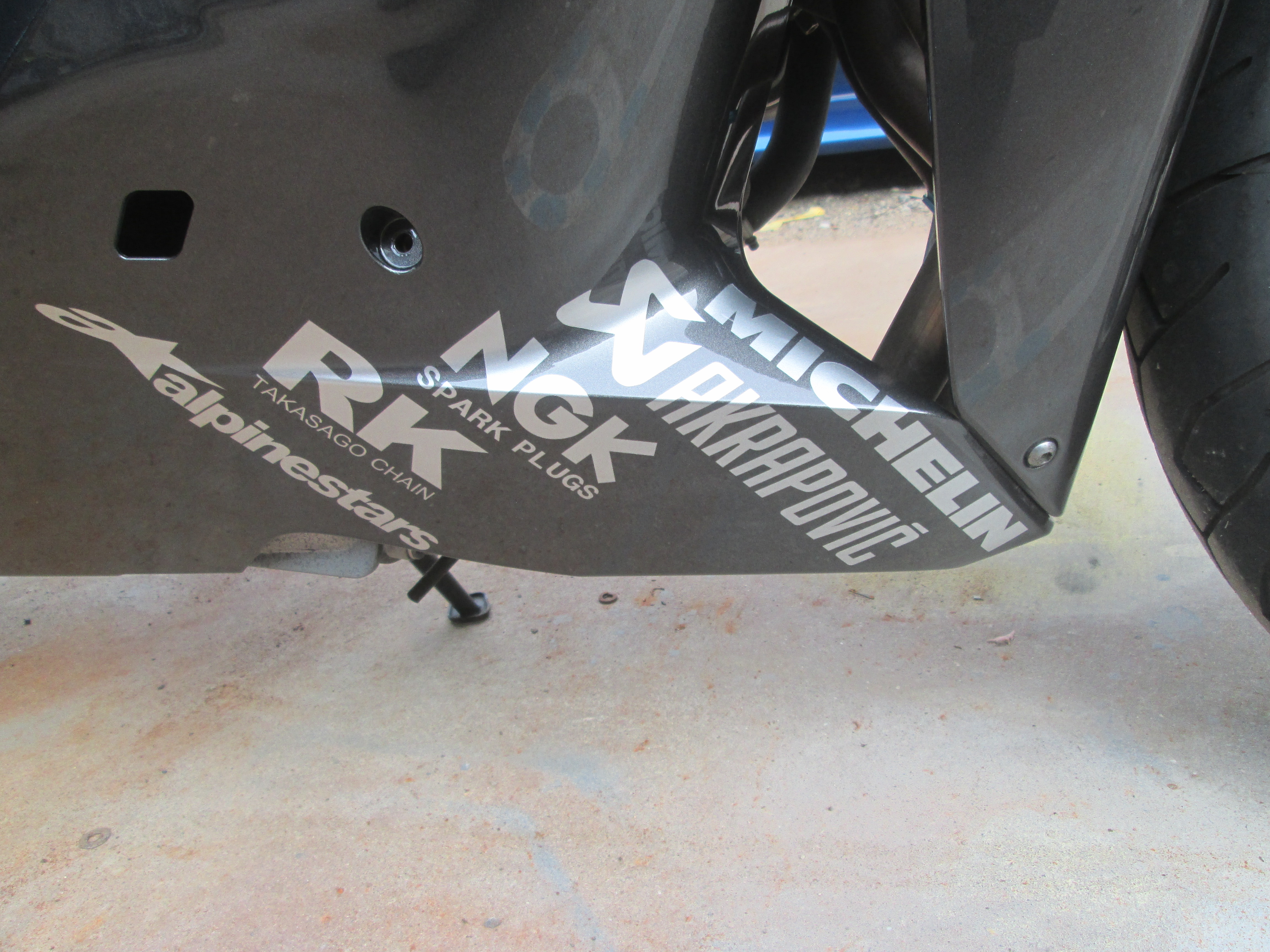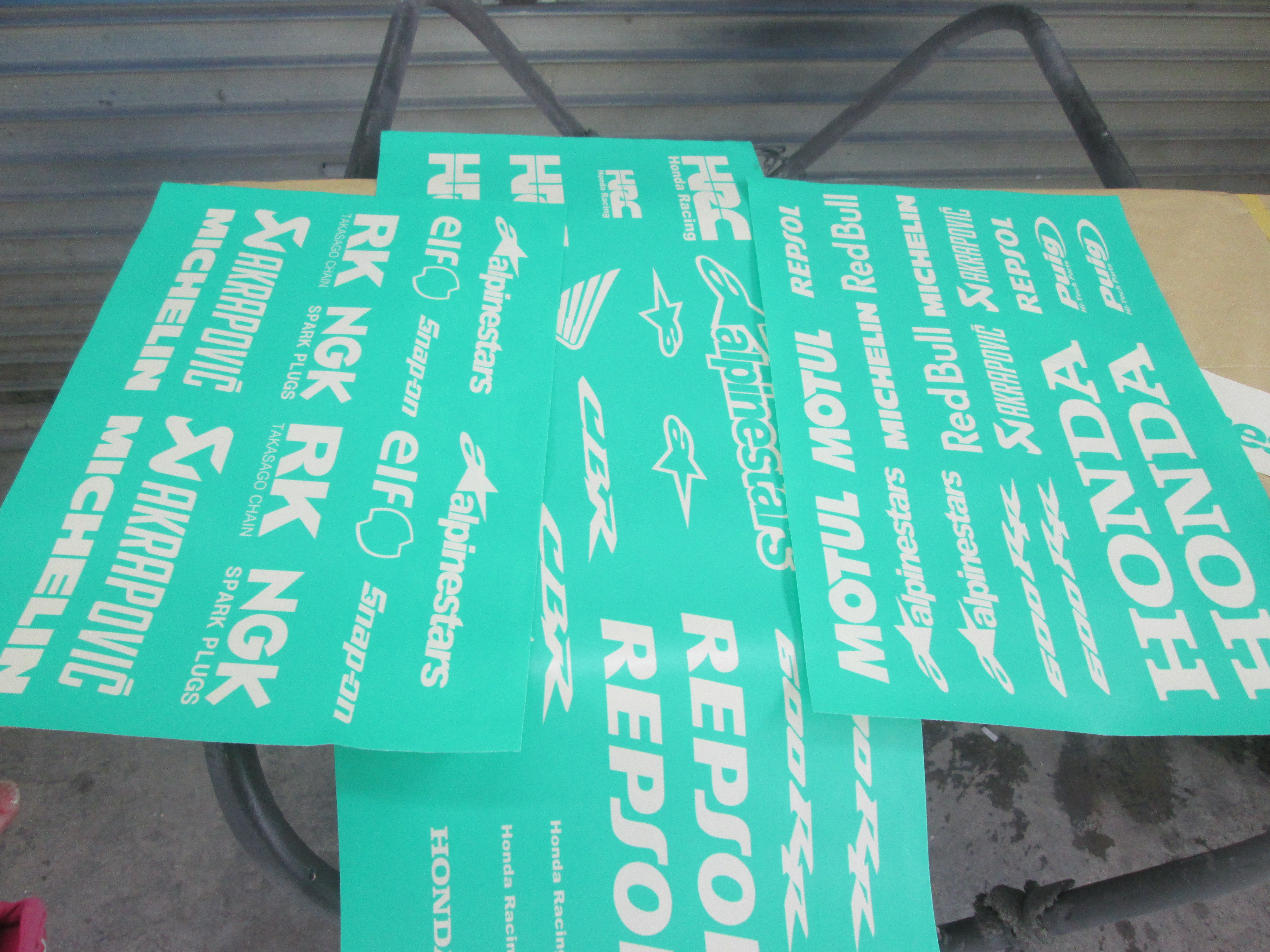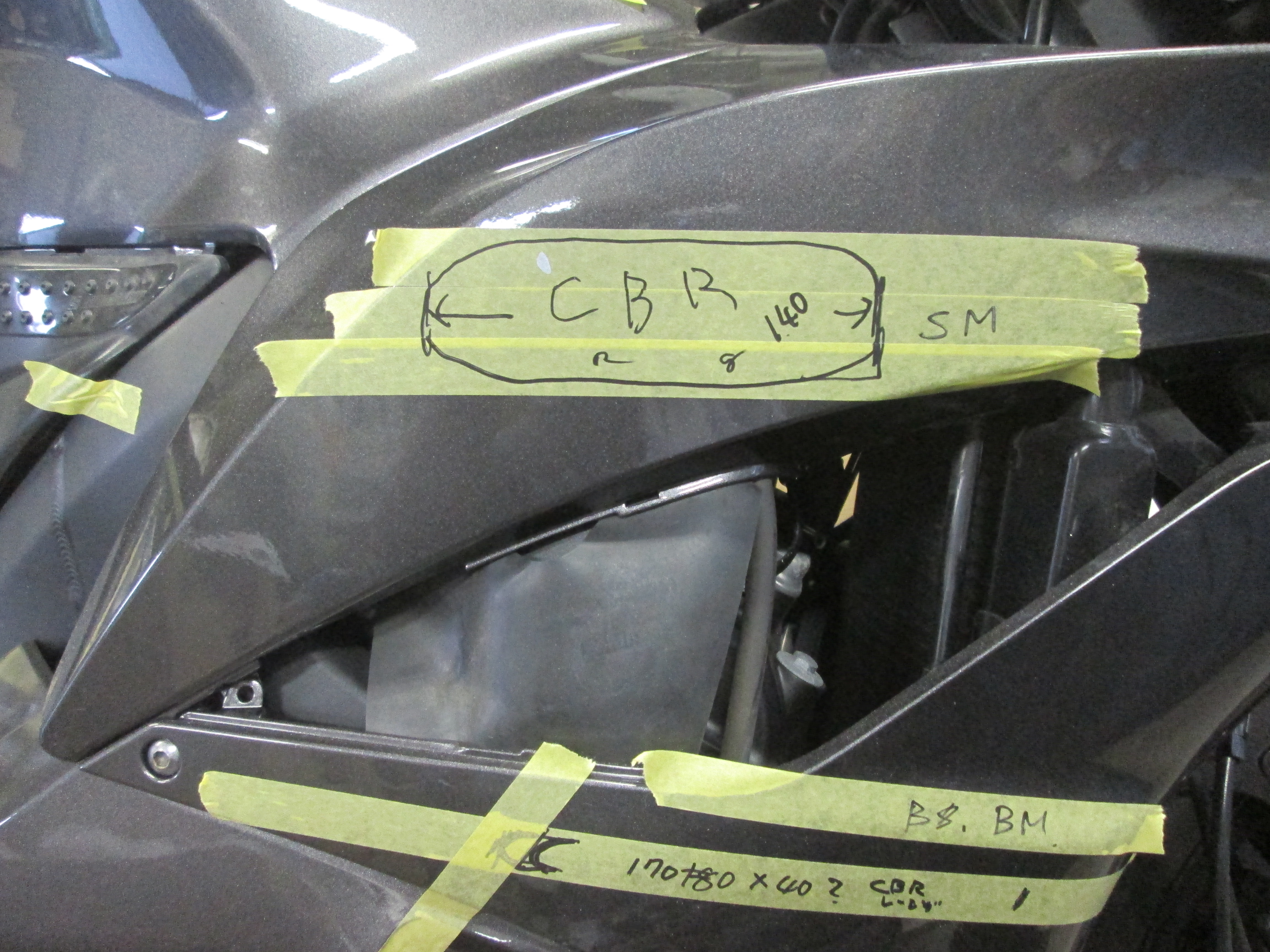 スポンサーロゴも塗装です。ロゴの位置と色、大きさの打合せ・・・
