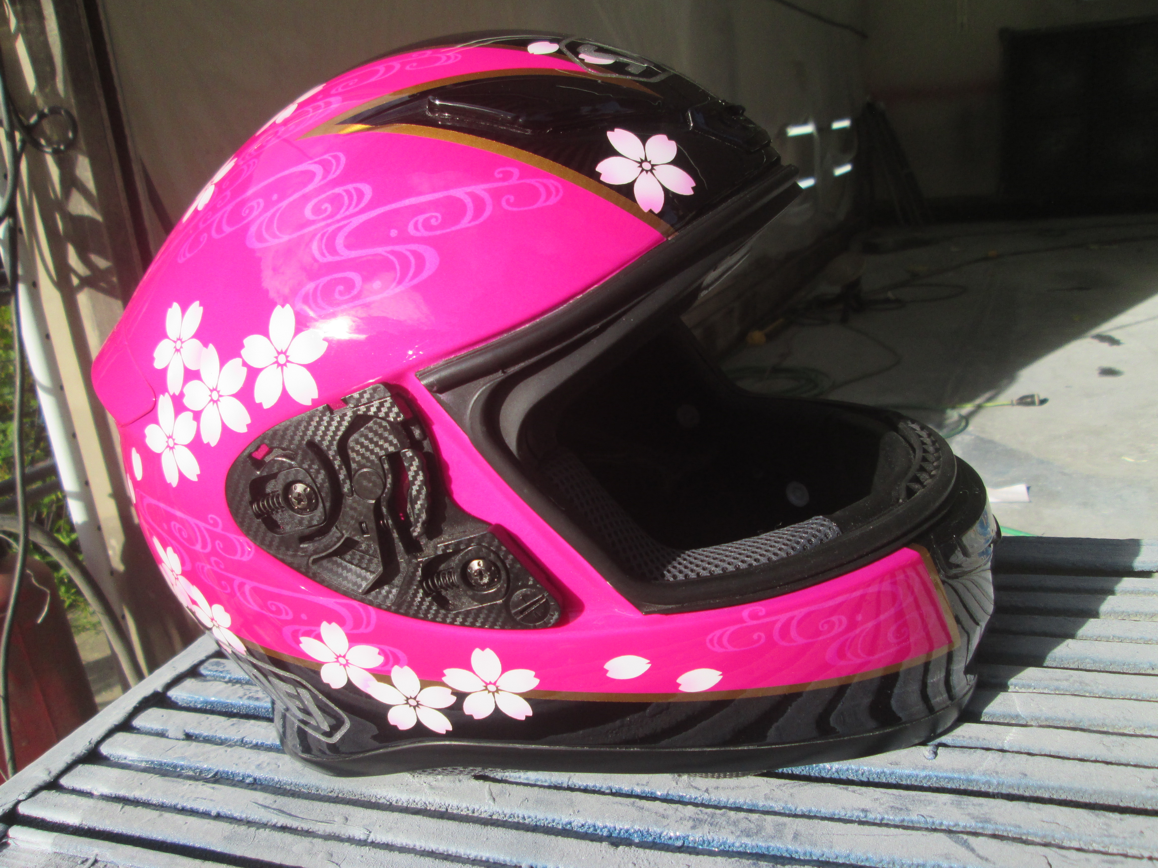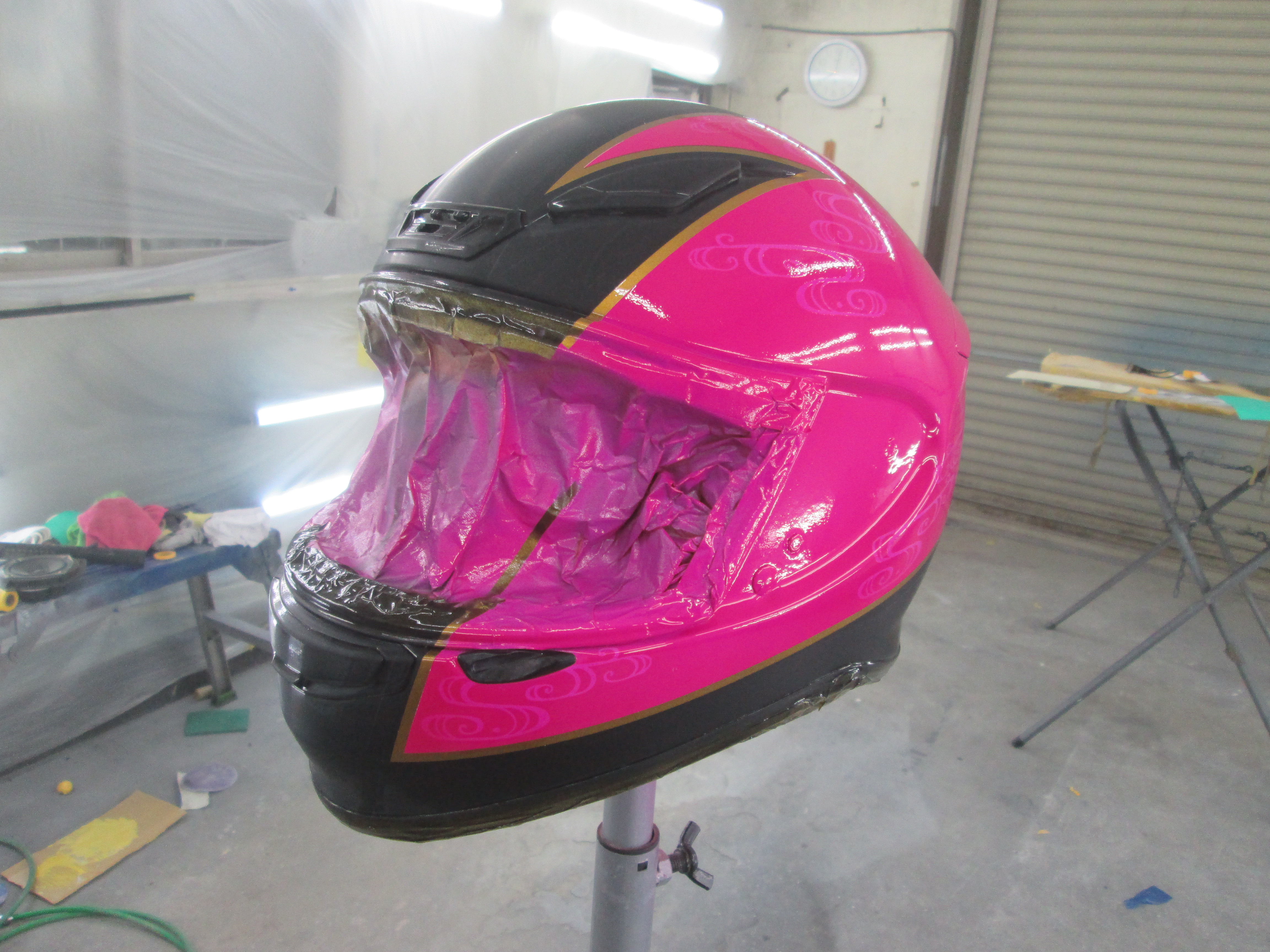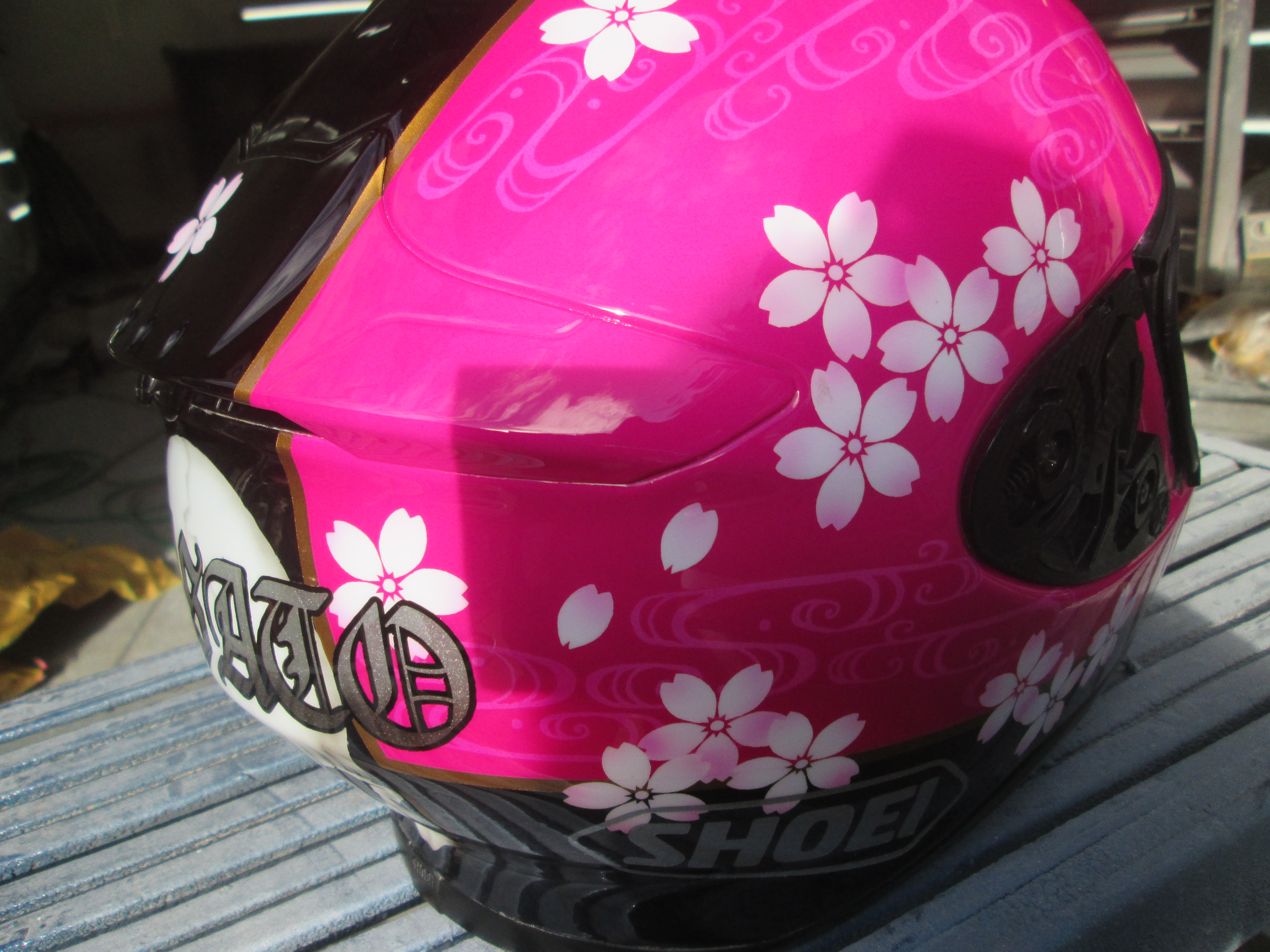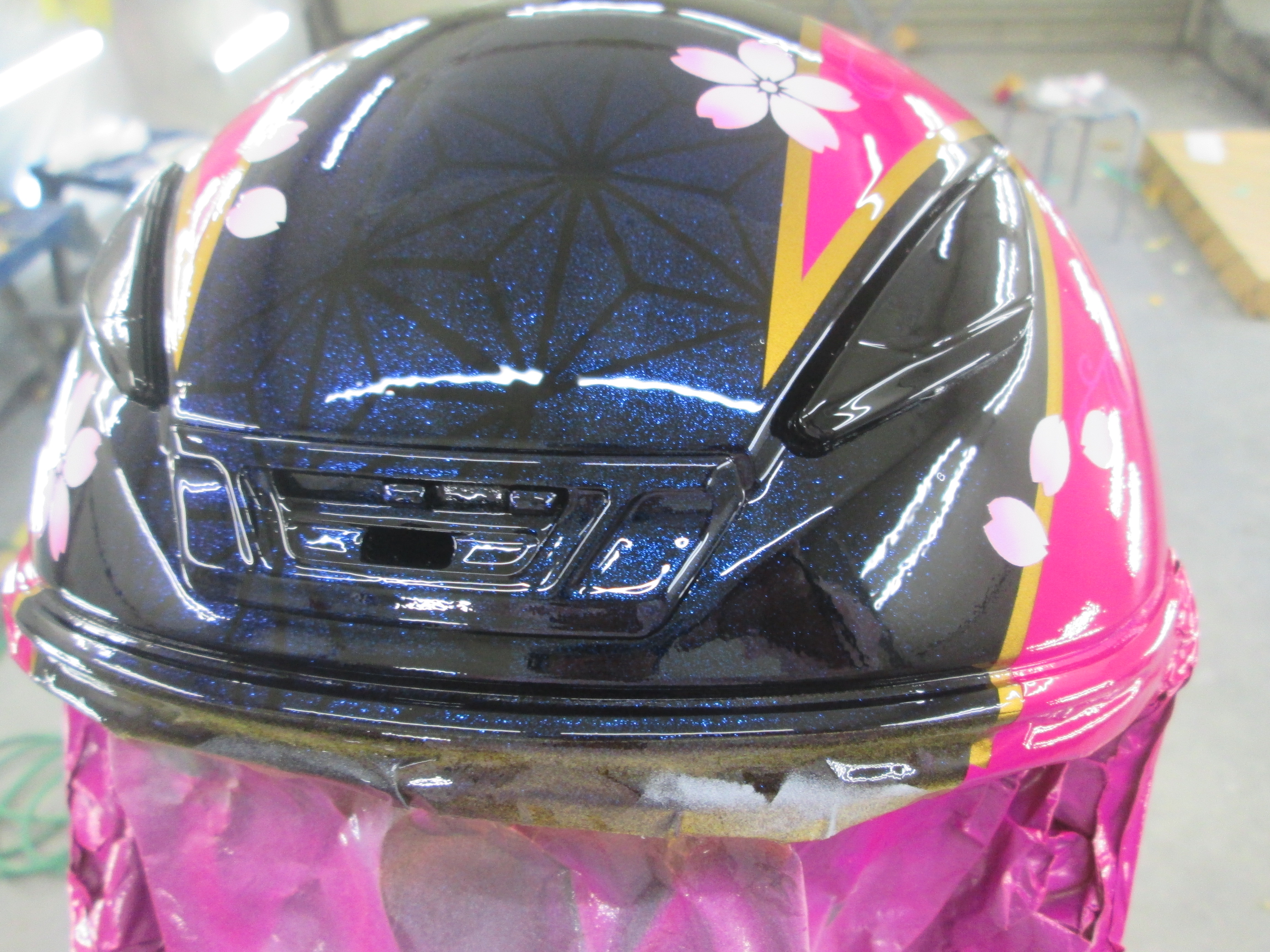 和柄の塗装です。 和柄のマスキングシートです。 線が細いので、剥がすのも張付けるのも難しいです。 黒、金、ピンクの順にペイントです。 雲模様?を薄いピンクにして・・ 桜の花びらをペイントします。 黒色には、ブルーパールで模様を入れました。 後側にドクロ! 虎、 段取クリア、仕上げのクリアで完成です。 花びらにグラデーション、 車に和柄ペイントしてみたいですね。・・・すげー時間かかるだろうな~