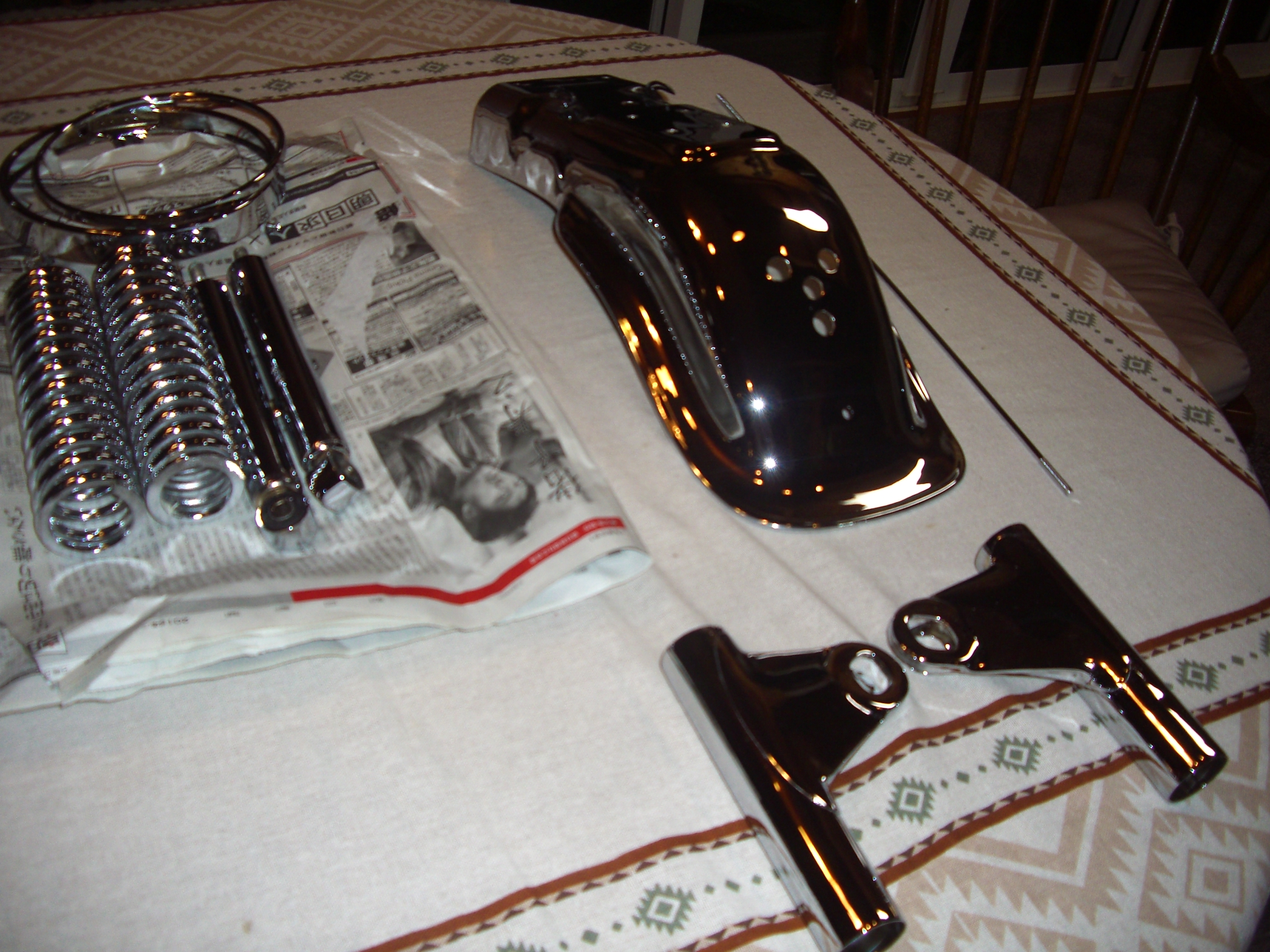 リムは、再メッキ スポークは、新品部品に交換 中央のパーツはブラスト、ポリッシュ 組立てるとピカピカです。