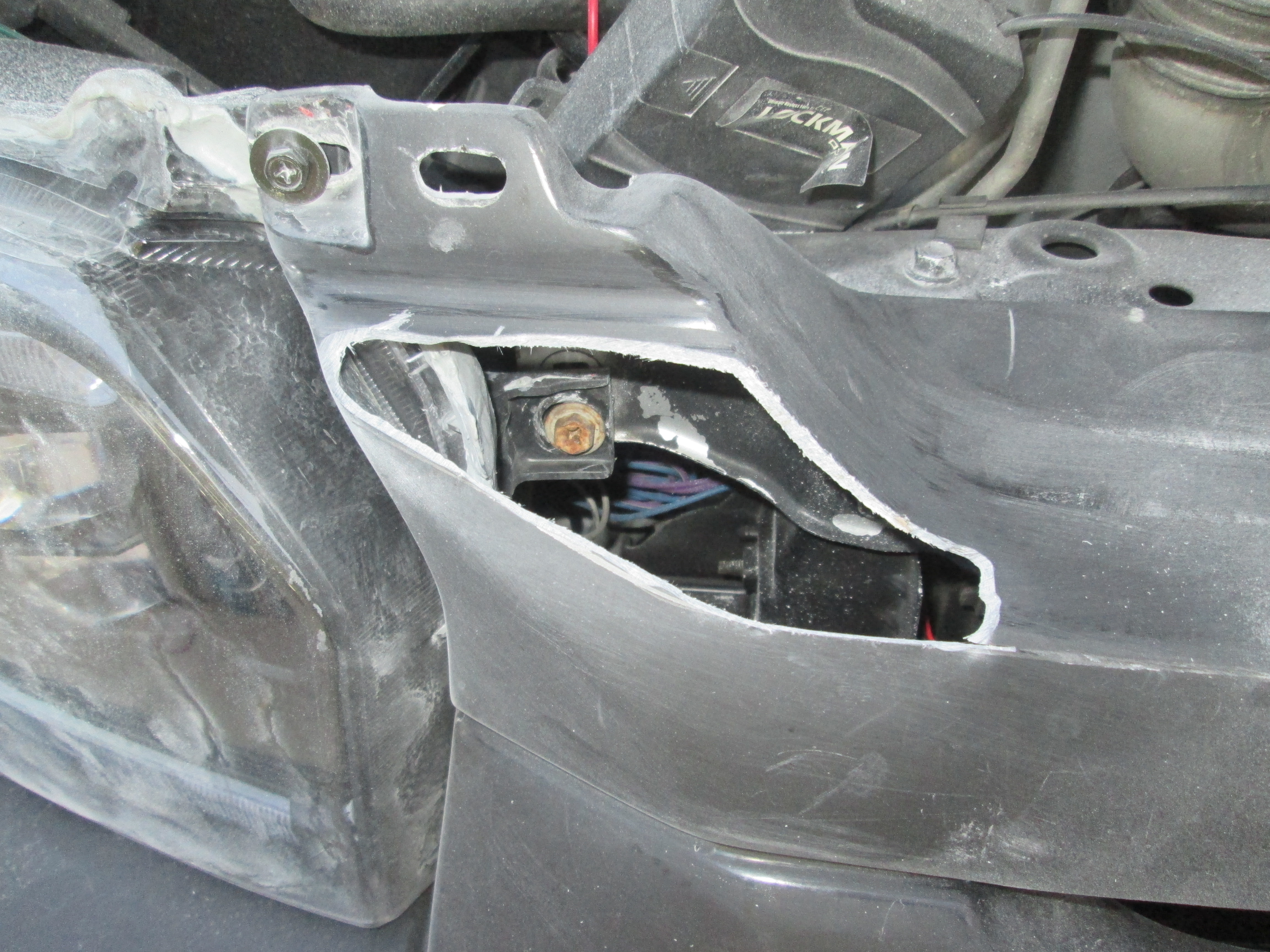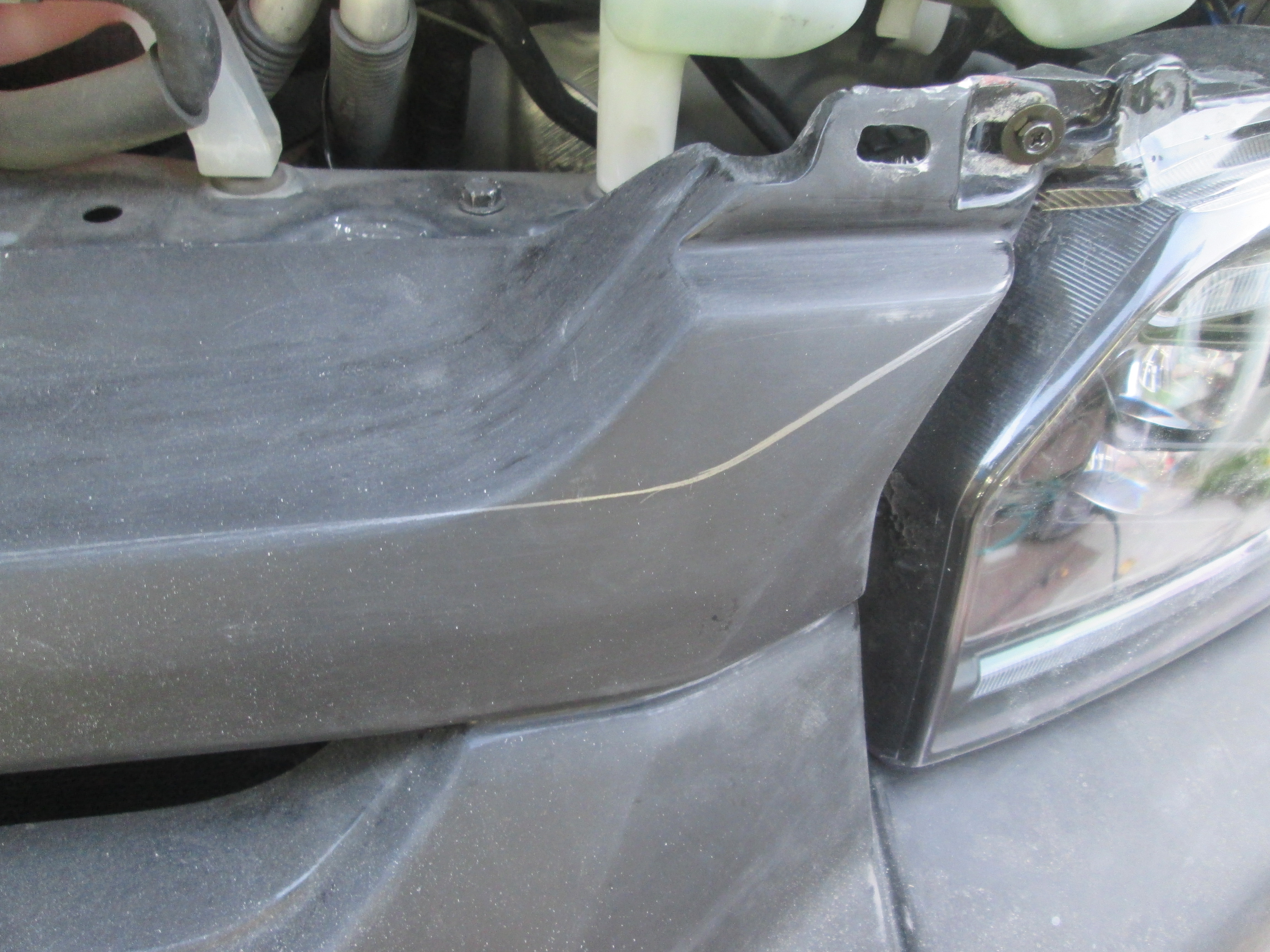 ボンネットとバンパーが、あたって・・・なので加工します。