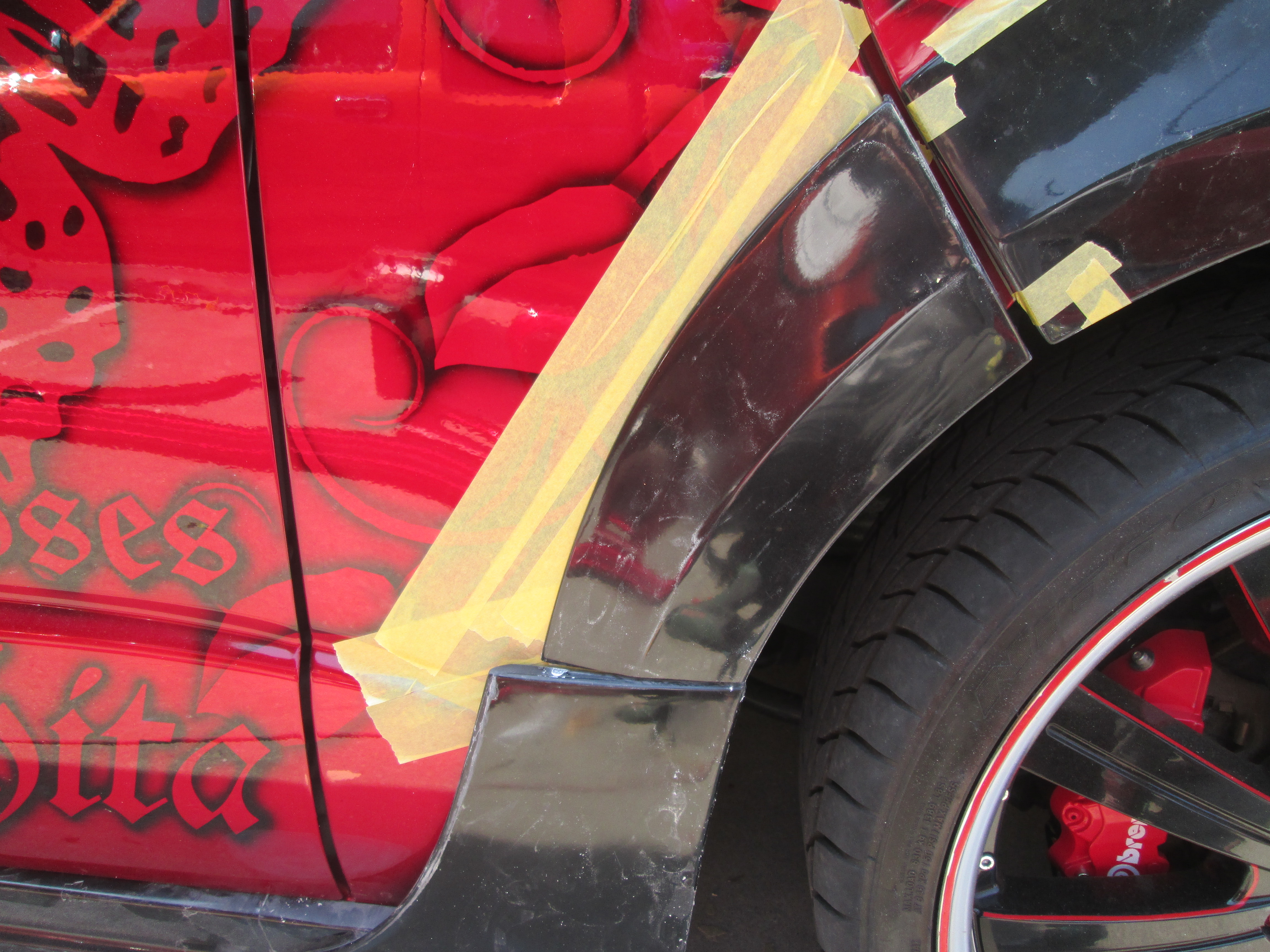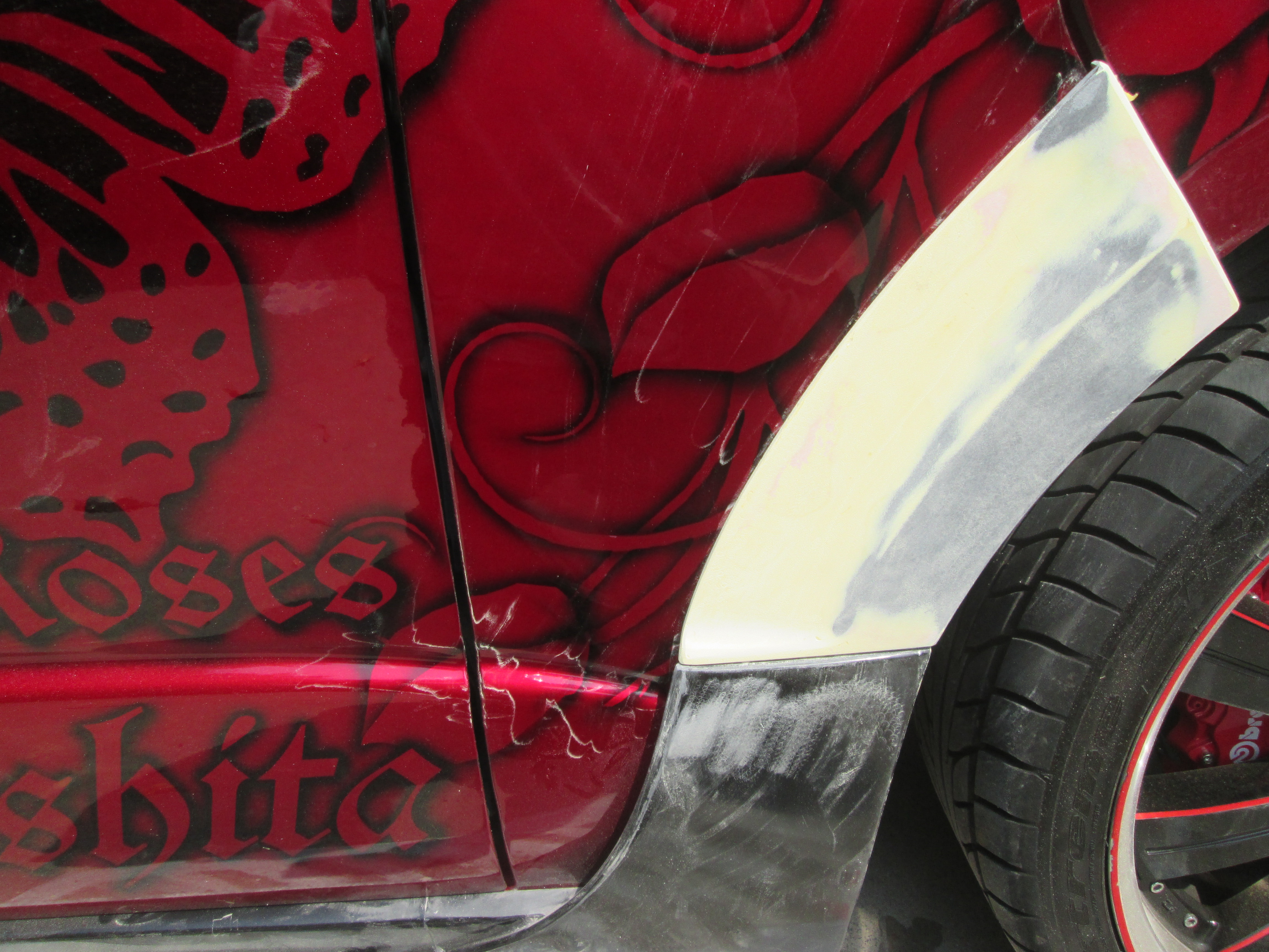サイドステップとオーバーフェンダーの製造メーカーが違うので型が合いません。 なので・・・